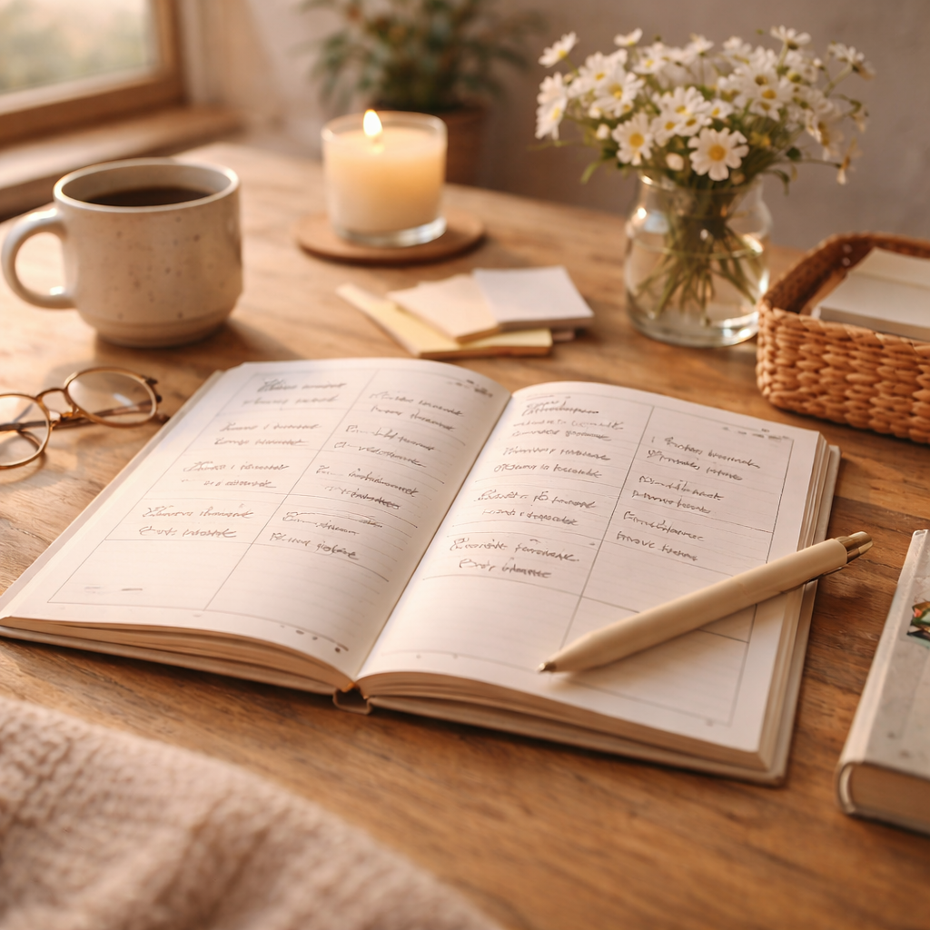 Menuliskan rencana di kertas kecil atau papan catatan juga membuatnya terasa lebih sederhana dibandingkan aplikasi yang penuh fitur. Visual yang bersih membantu pikiran terasa lebih ringan.
